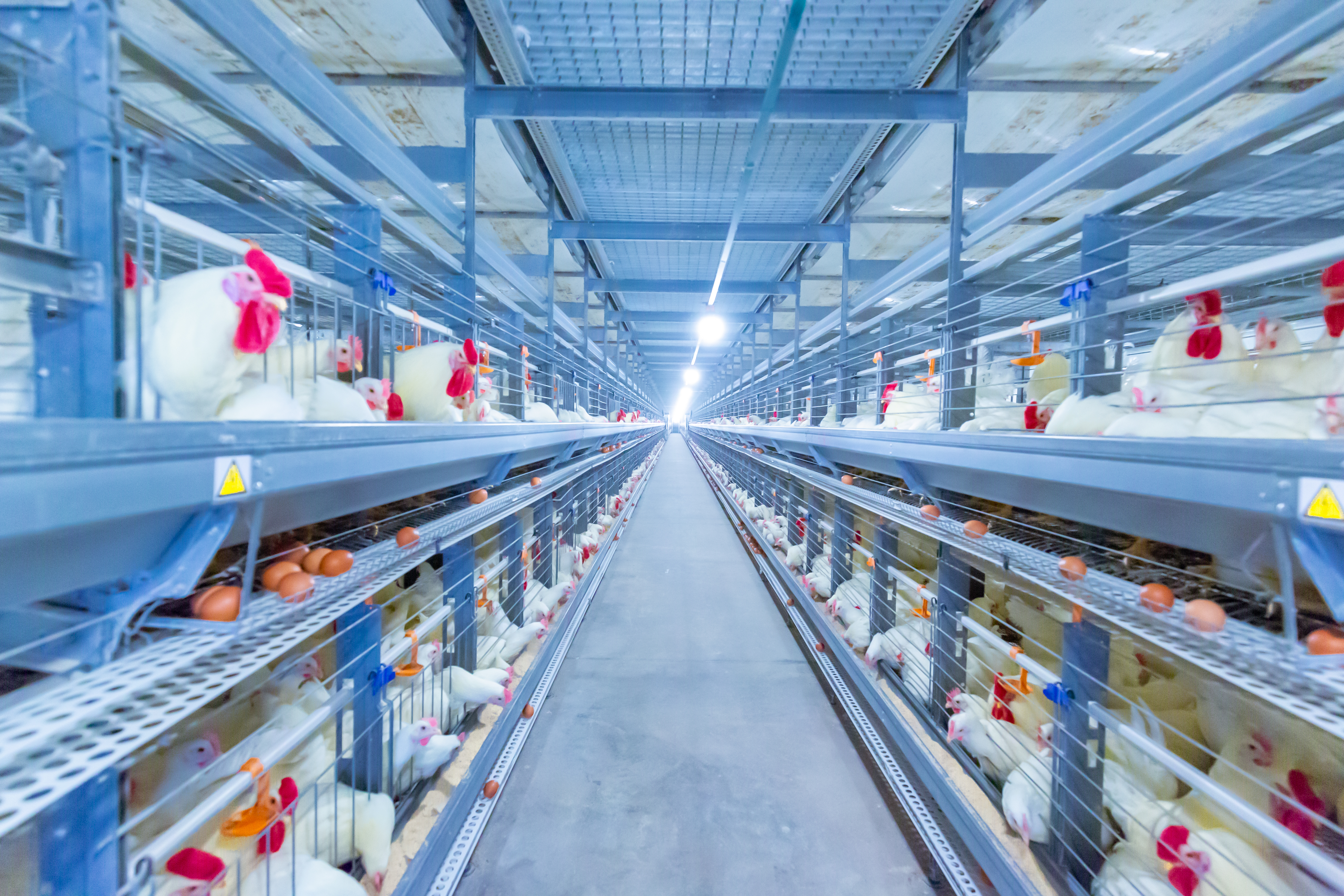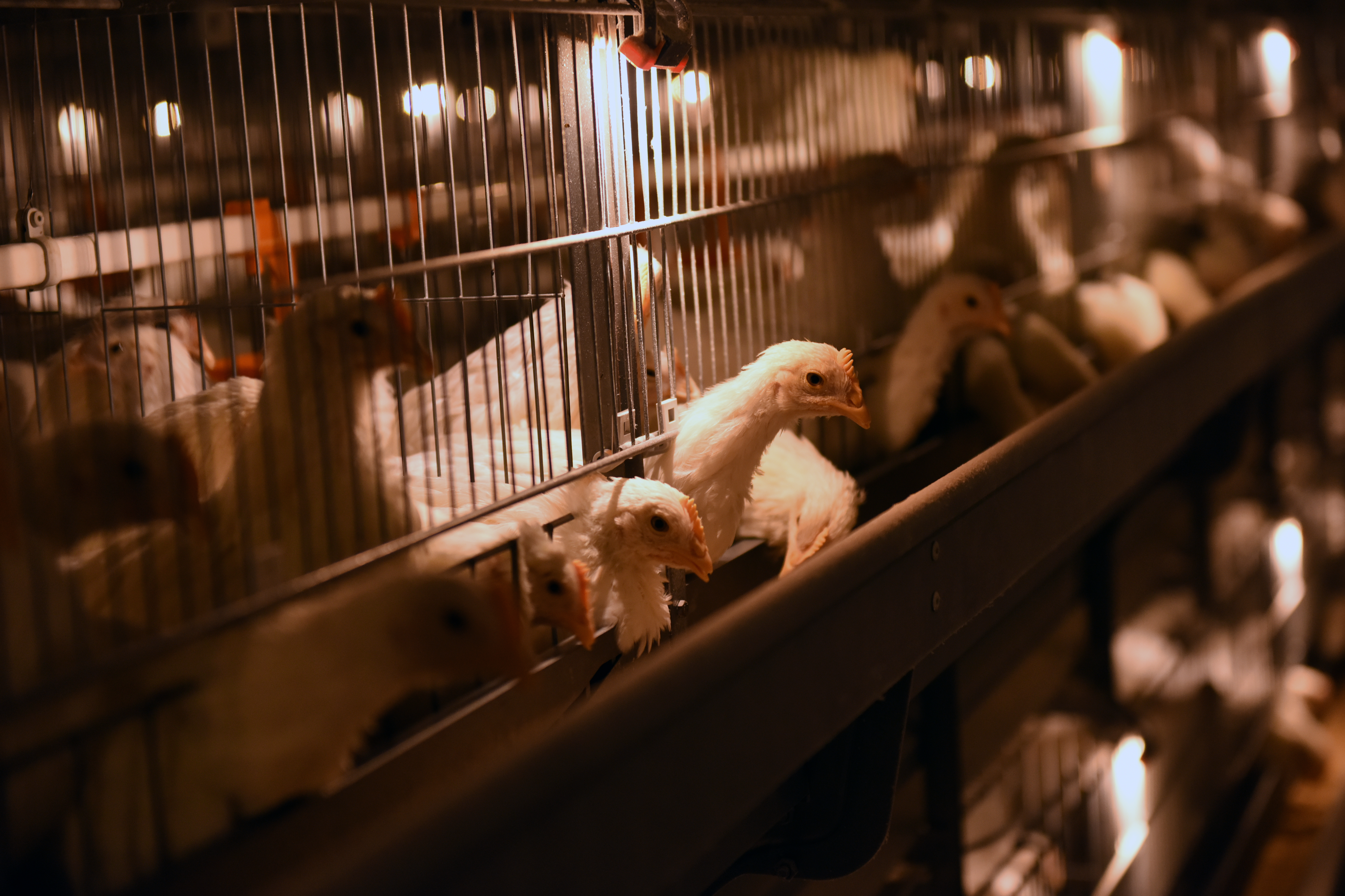 鸡舍内的青年鸡