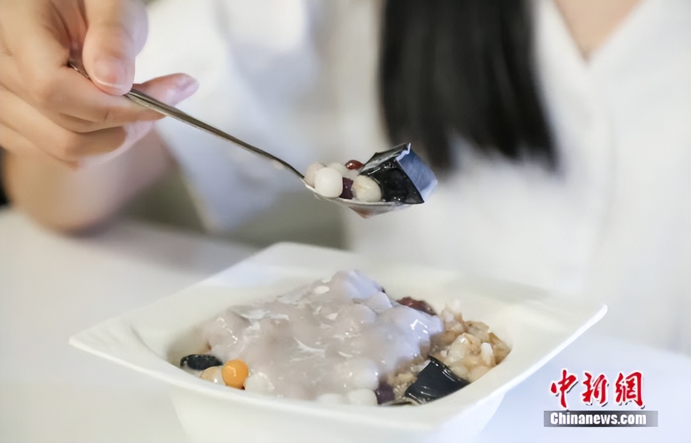 图为食客正在吃龟苓膏糖水。王伟臣 摄