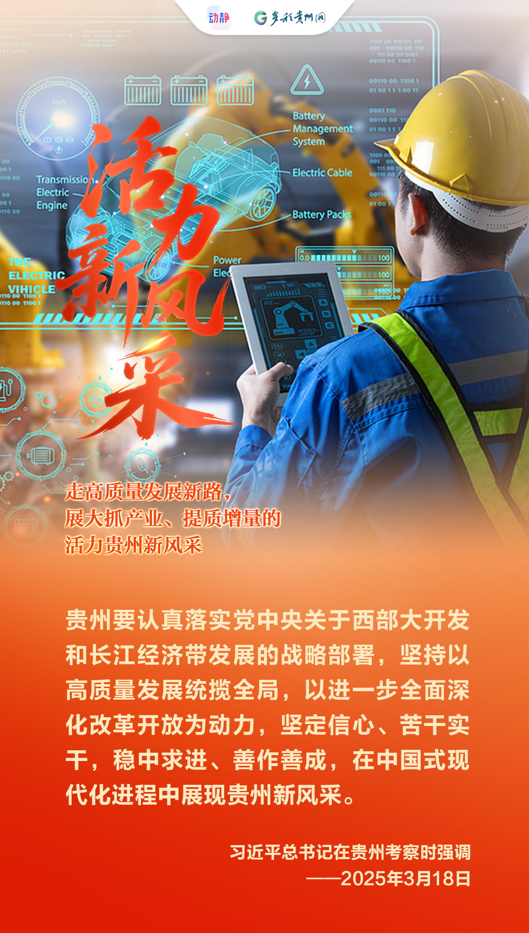 今天(3月6日)上午,出席十四届全国人大四次会议的贵州代表团在驻地举行团组开放日活动,全国人大代表、省委书记、省人大常委会主任徐麟就贵州在“十五五”时期如何走出新路子、展现新风采回答了人民日报记者提问。六张海报,读懂“奋进、活力、幸福、文明、美丽、勤廉”六个贵州新风采。