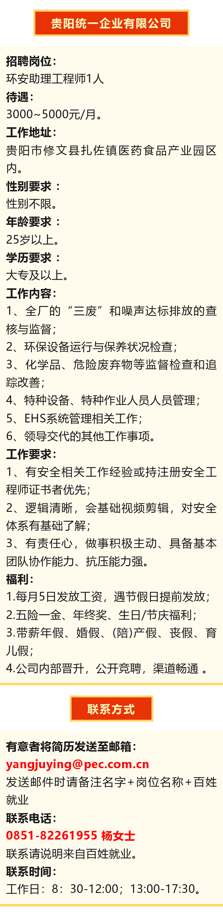 贵阳统一企业有限公司招聘!五险一金!年终奖!