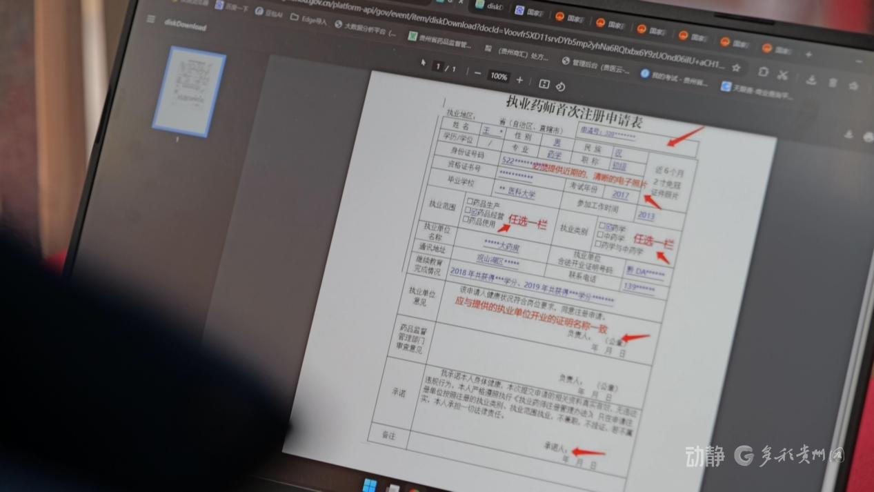 “平台提示我需要药品经营许可证、资格证、身份证等,我就按照模板内容填写上传就好了,不用担心漏交或者是漏填之类的情况,不用再跑现场了,早上填报,到下午就可以拿到注册证了。”办理人张云平说。