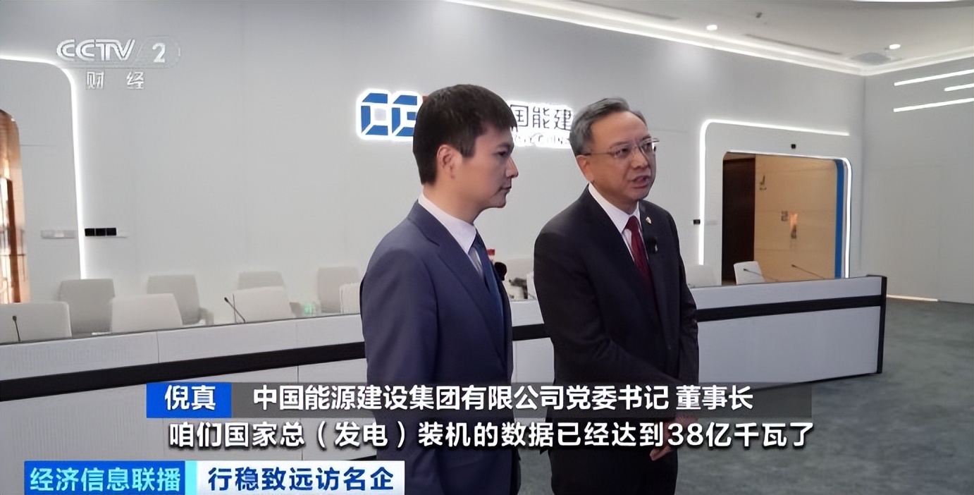 中国能源建设集团有限公司党委书记 董事长 倪真:国家总发电装机的数据已经达到38亿千瓦。我们能建大概总体参与建设将近26亿千瓦,近70%的份额。