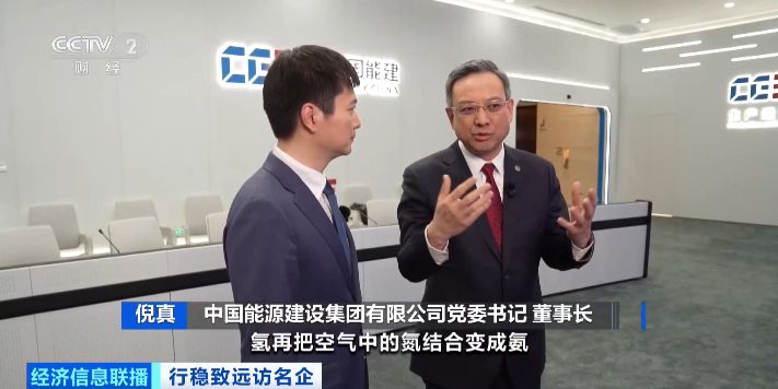 中国能源建设集团有限公司党委书记 董事长 倪真:我们是通过风光发电把水做出来氢,氢再把空气中的氮结合变成氨,氨再在动力中进行燃烧释放之后,又回到了水,完全绿色循环。