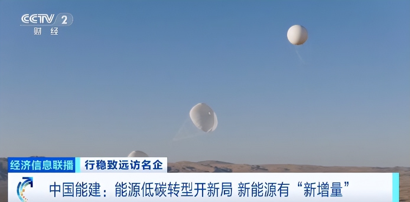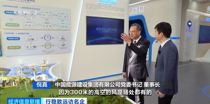 中国能源建设集团有限公司党委书记 董事长 倪真:我们通过高空风伞,把300米的风能取下来,也是风能发电,但跟传统的100米高的风能发电比,它是升维升级的。