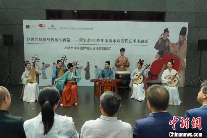 5月13日下午,在中央音乐学院民族室内乐团的精彩演绎中,木版水印非遗体验周活动启动仪式拉开帷幕。一曲民乐合奏《春碧》,用柔美而悠扬的国风曲调呈现中华音乐魅力,特别是几位乐者身着古装,恍若《韩熙载夜宴图》的画中人,把现场观众带回千年前的那场雅宴之上。