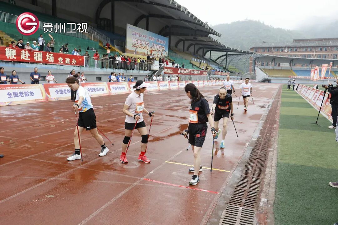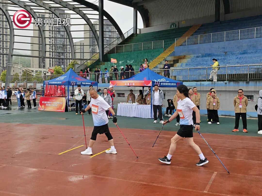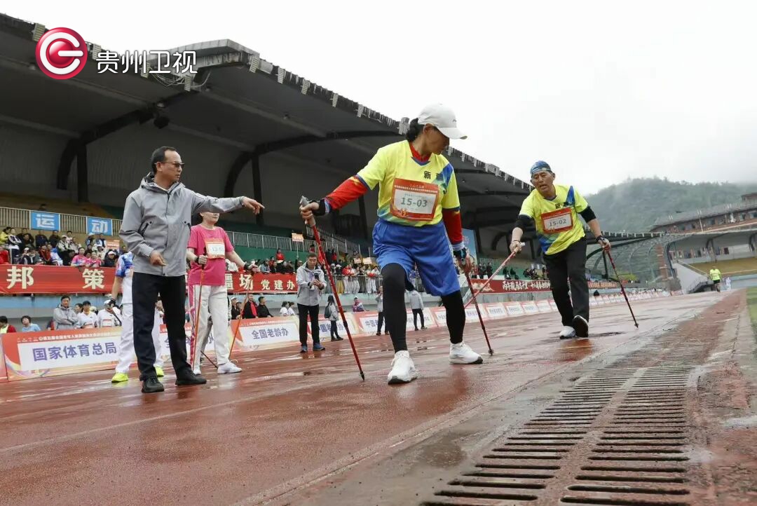 4月15日,第五届全国老年人体育健身大会持杖健走交流活动场地接力赛(混合4×400接力)在贵州省习水县举办,全国30余支队伍健走红色热土,展现团结协作、健康向上的精神风采。