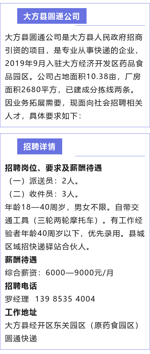 圆通公司招聘派送员、收件员!月薪6000-9000元!