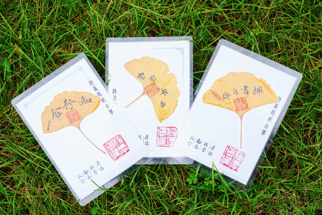 搭配上独一无二的银杏叶题字书签