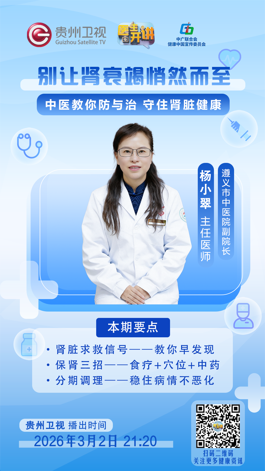 锁定3月2日21:20《医生开讲》,让我们一起跟随专家的指引,学会倾听肾脏发出的“求救信号”,远离肾衰风险!精彩不容错过,别忘了准时收看!