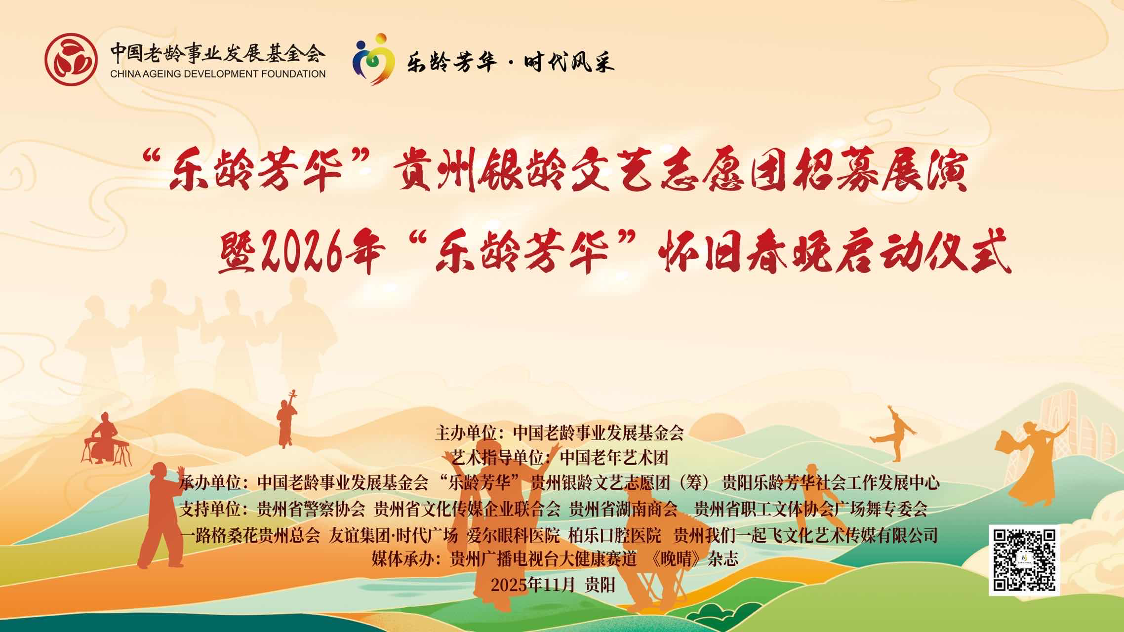 11月27日下午,中国老龄事业发展基金会“乐龄芳华”贵州银龄文艺志愿团招募展演暨2026年“乐龄芳华”怀旧春晚启动仪式在贵阳隆重举行。