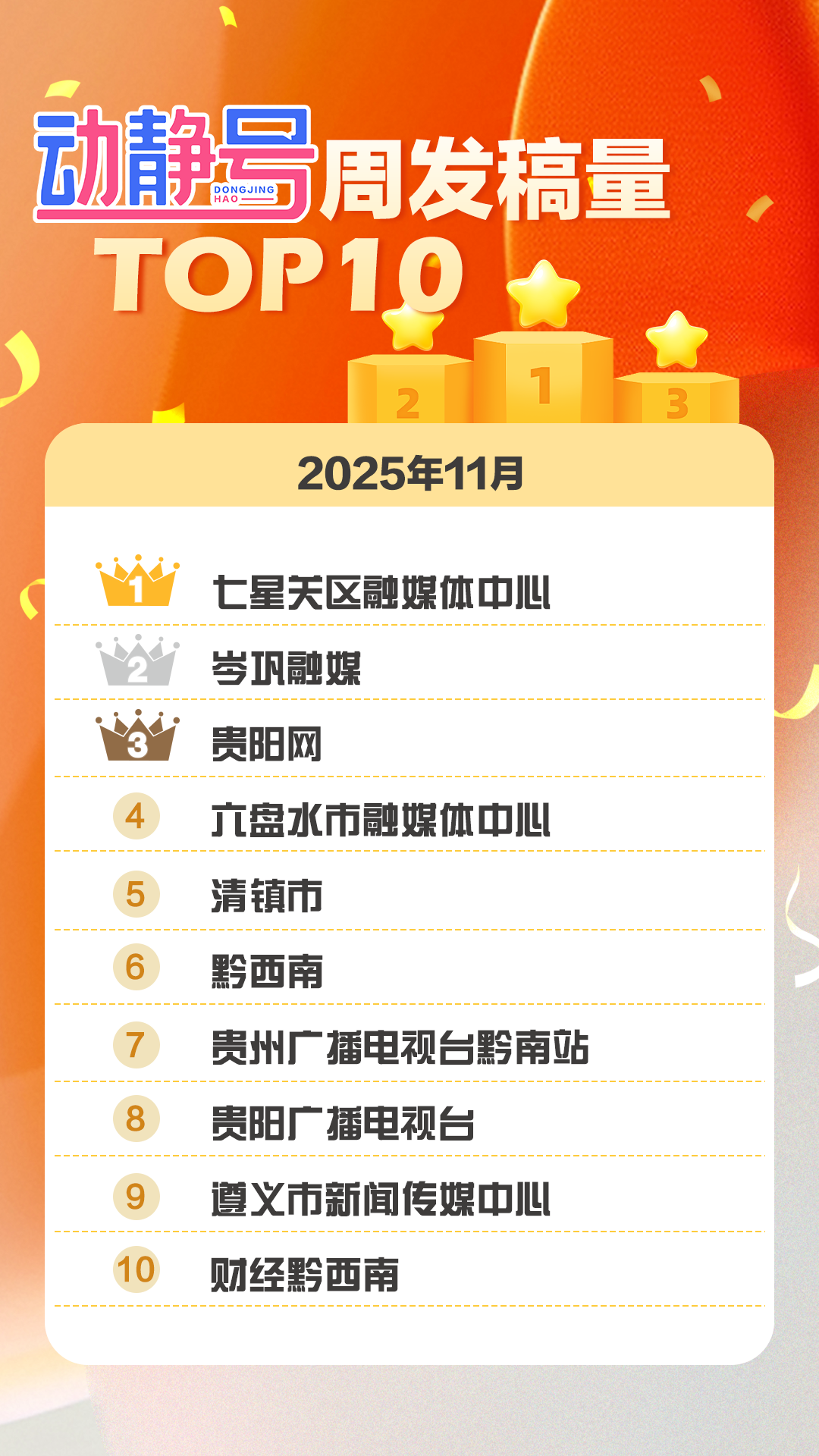 🌟“双榜”同辉:七星关区融媒体中心、财经黔西南、清镇市、黔西南、贵州广播电视台黔南站同步发力,发稿量与阅读量双双跻身前列,以实绩共同勾勒出全域覆盖、高效传播的内容版图。