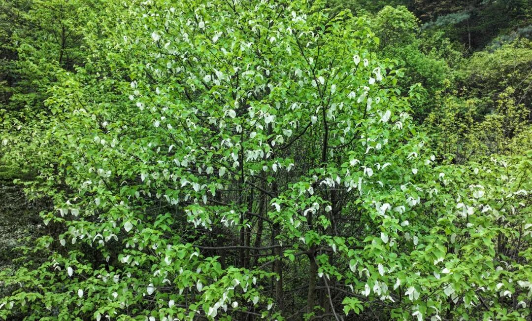 在纳雍县珙桐省级自然保护区,大小不一的珙桐以独有的姿态,诉说着千万年的生命传奇:嫩绿的枝叶间,两枚洁白硕大的苞片托着深色花序,形似白鸽展翅,灵动雅致。