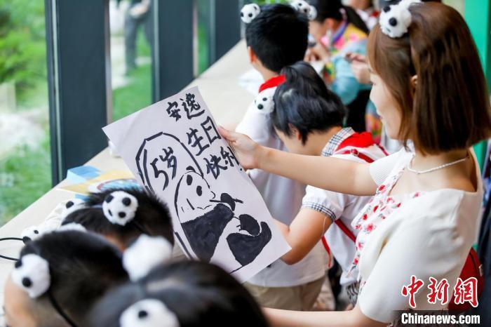 6月15日,四川文旅吉祥物大熊猫“安逸”的5岁生日会在成都大熊猫繁育研究基地举行。学生代表以及“安逸”粉丝来到生日会现场,为“大熊猫安逸庆祝。