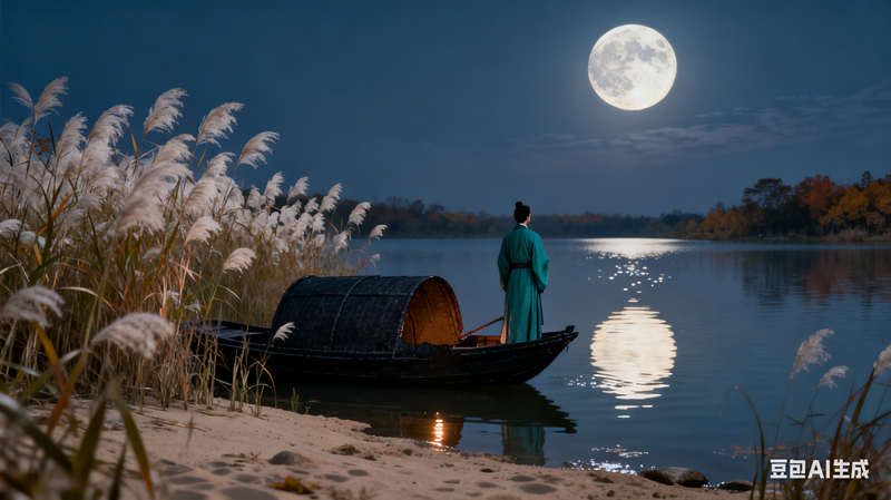 愁君独向沙头宿,水绕芦花月满船。
