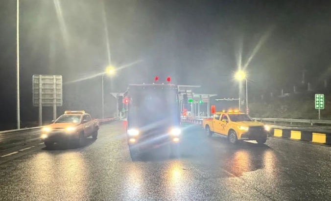1月7日,松铜高速盘信服务区至将军山段出现冻雨情况,发现异常情况后,松铜公司第一时间启动低温雨雪冰冻灾害应急预案,全体人员迅速投身抗凝保畅第一线,全力以赴确保道路安全畅通。