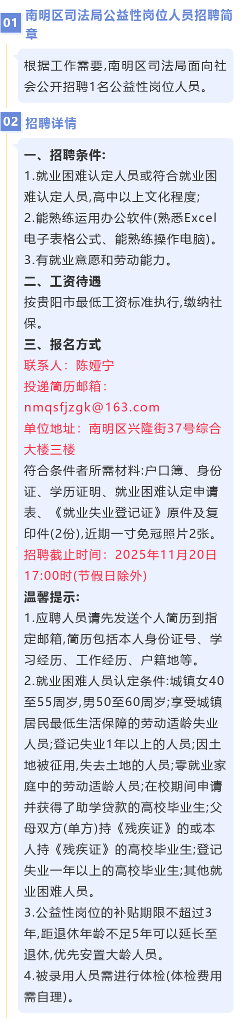 【政府机关】贵阳市南明区司法局招聘!高中起报!