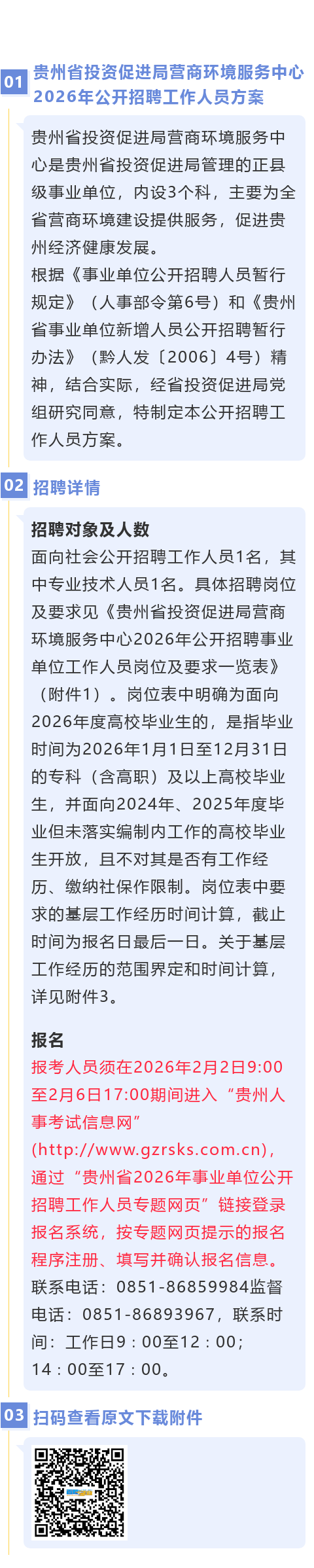 贵州省投资促进局营商环境服务中心招聘!报名截止时间:2月6日!