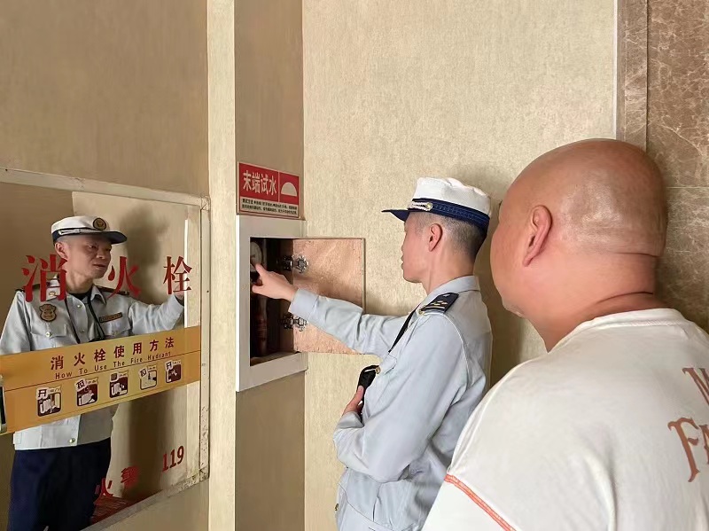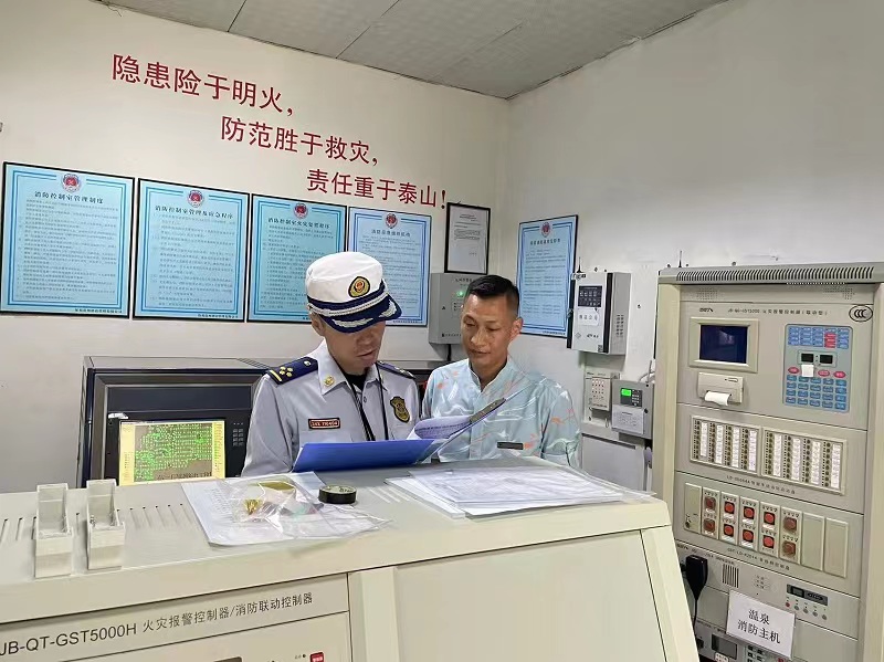 检查期间,大队防火监督员认真听取了单位负责人关于消防安全工作落实情况开展情况汇报,并与单位负责人就如何进一步做好单位消防安全工作展开了交流。随后,防火监督员重点检查了场所内消防设施是否定期维修保养并保持完好有效、是否使用不合格消防产品、消防安全通道及出口是否堵塞、灭火和应急疏散预案是否制定完善等情况。针对检查中发现消防安全隐患,大队监督员提出整改意见,并要求酒店负责人对存在的问题及时整改。