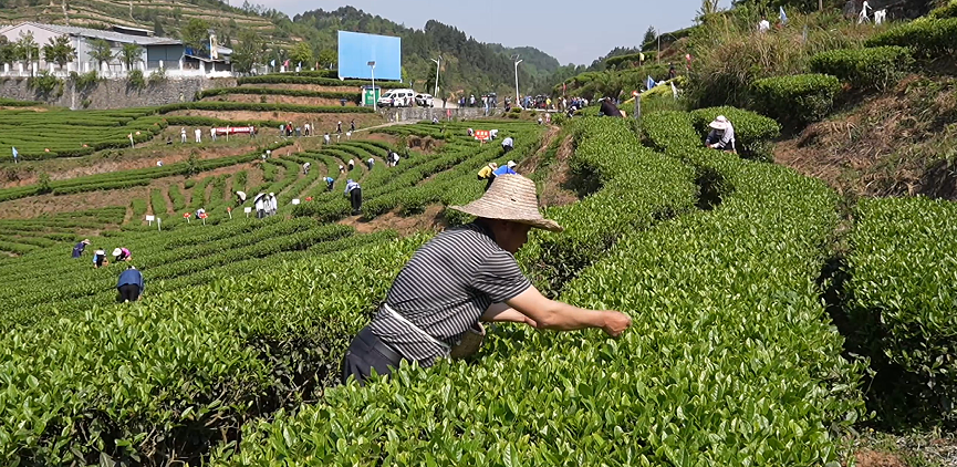 活动设置镇村组、女子组、男子组三个组别,在比赛现场,参赛选手们腰挎茶篓,身手敏捷,指尖快速翻飞,娴熟地采摘着一芽一叶的优质茶青,在比拼采茶速度与采摘技艺的同时,也展现出茶农们勤劳质朴的精神风貌,现场氛围热烈。