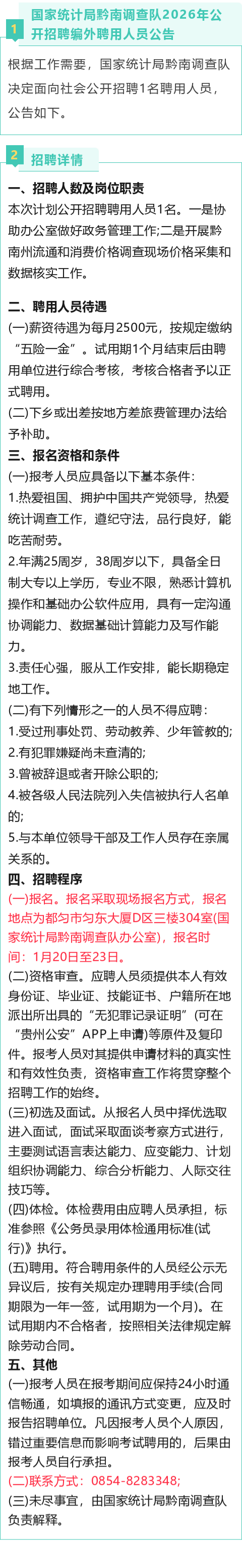 【事业单位】国家统计局黔南调查队招聘!五险一金、大专起报!