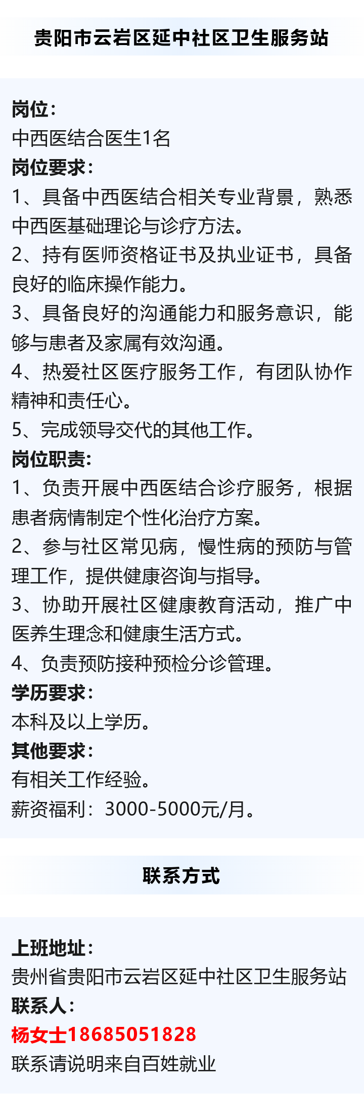 贵阳市云岩区延中社区卫生服务站招聘!正在报名!