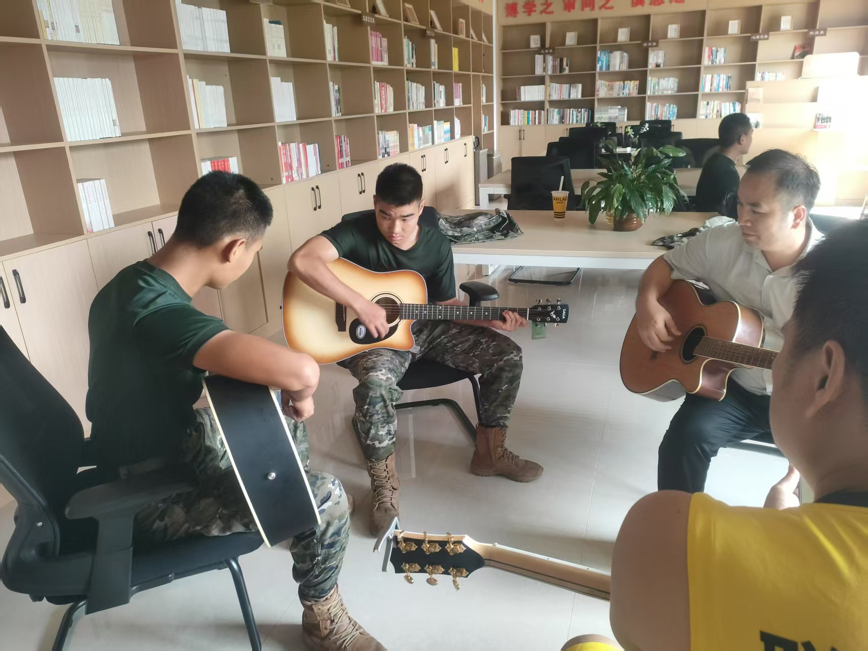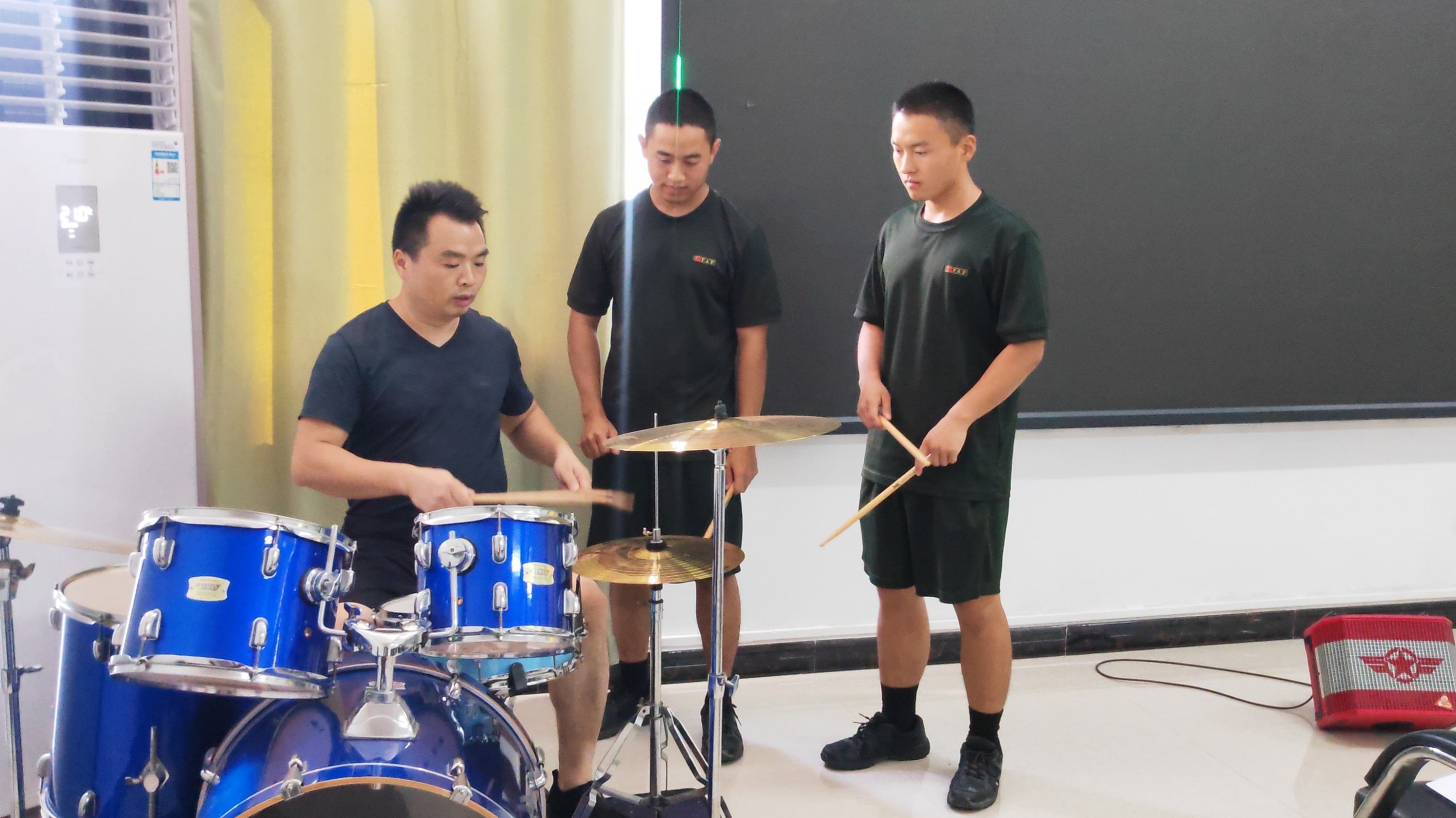 活动核心是为官兵提供系统、免费的音乐技能培训。骨干教师利用官兵业余时间,开展吉他、架子鼓教学及乐理传授。教学循序渐进,从基础乐理、乐器认知到基本指法、简单曲目演奏,逐步引领官兵走进音乐世界。训练场上严肃的战士,在排练室化身专注的“学员”,指尖的音符成为他们卸下疲惫、抒发情感的方式。