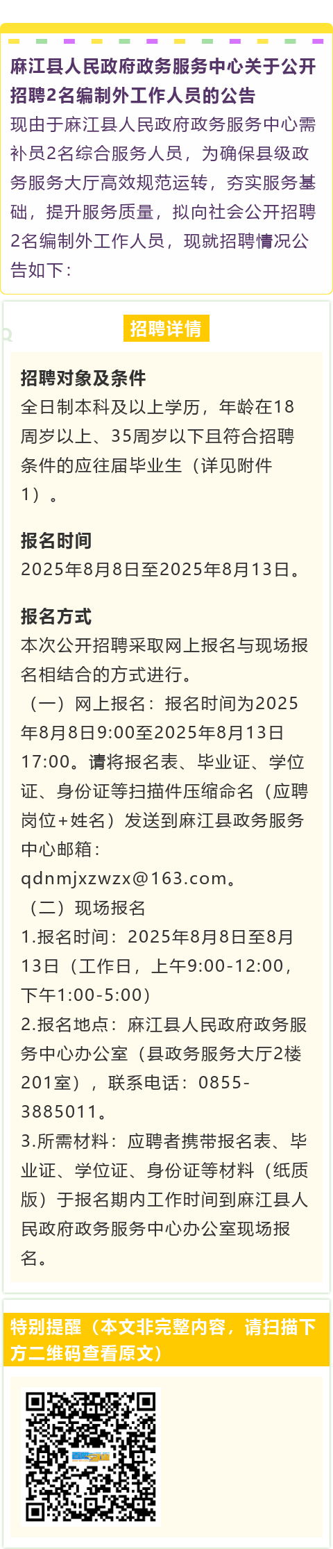 【事业单位】人民政府政务服务中心招聘综合服务人员!报名截止时间:8月13日!
