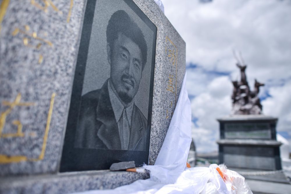 这座石碑镌刻着杰桑·索南达杰的名字。20多年前,为了保护濒危的藏羚羊,他与盗猎分子枪战到生命最后一刻,遗体被冻结成冰雕。