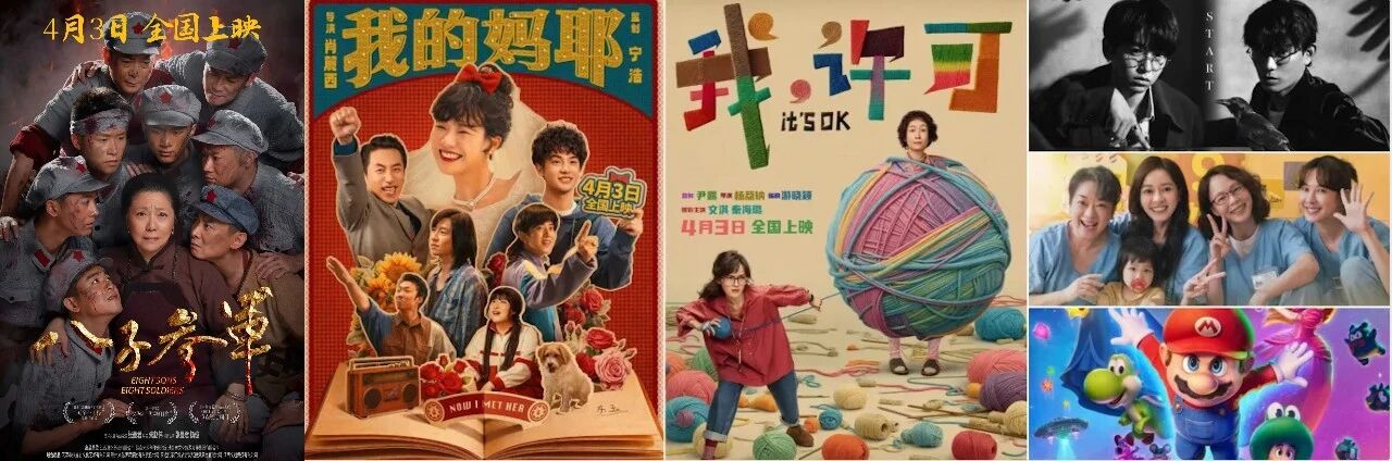 4月,清明档集结《八子参军》《我,许可》《我的妈耶》《阳光女子合唱团》《天才游戏》《超级马力欧银河大电影》等超20部影片,包括历史革命、剧情、悬疑、科幻、纪实等多元题材,让不同年龄、不同喜好的观众都能在影院找到自己的“心头好”。