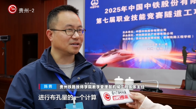 贵州铁路技师学院教学管理部机械工程系系主任陈勇:选手需依据题目给定的围岩等级,完成布孔量计算、炸药量估算及捆绑形式标注。此次考核重点检验凿岩台车司机对现场环境的了解、围岩等级、掌子面布孔数量与方式等知识的掌握程度。这也体现出我们的选手并非单纯的机械操作者,还具备扎实的现场施工知识,能够根据现场实际情况对施工作业进行灵活微调。