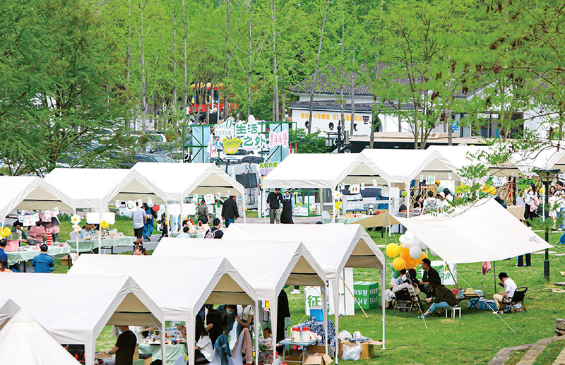 2023年4月,浙江省湖州市安吉县天荒坪镇余村举行“生活之外”青年市集活动,为青年人才搭建起合作交流的平台。图为青年市集活动现场。 安吉县委宣传部供图