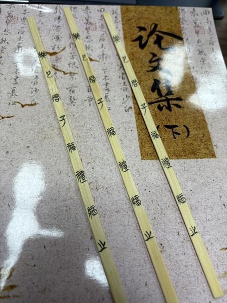 查紫贤在自制竹简上写下楚文字“乐也君子,福礼将之”赠予朋友。受访者供图