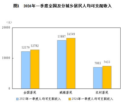 一季度,全国居民人均可支配收入12782元,比上年同期名义增长4.9%,扣除价格因素,实际增长4.0%。