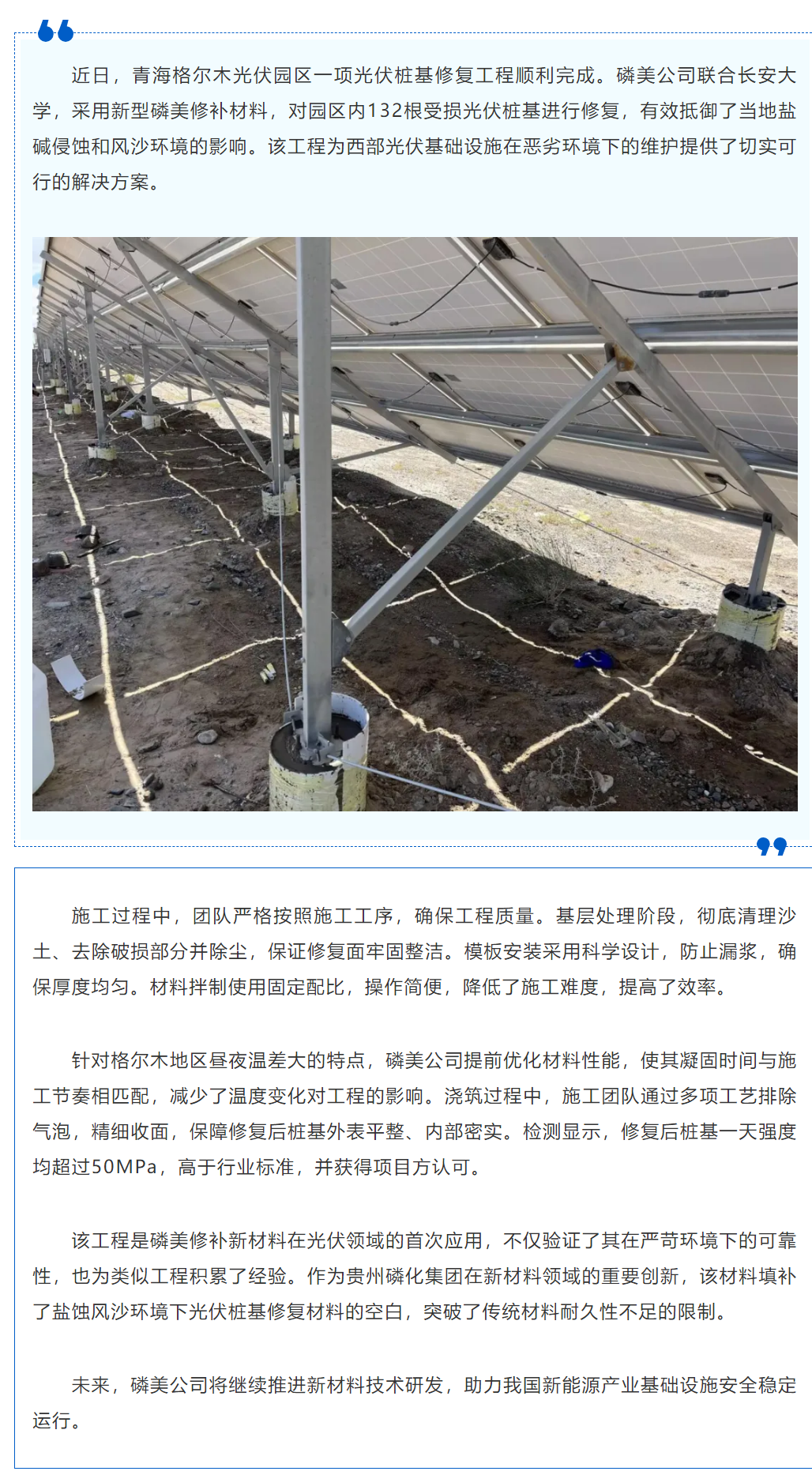 磷美新材料成功修复格尔木光伏基地桩基 破解盐蚀风沙难题