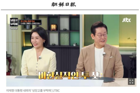 据韩国《朝鲜日报》报道,韩国总统李在明及其夫人出演的综艺节目《拜托了冰箱》于6日播出,并创下8.9%的收视率,为该节目开播以来的最高数据。