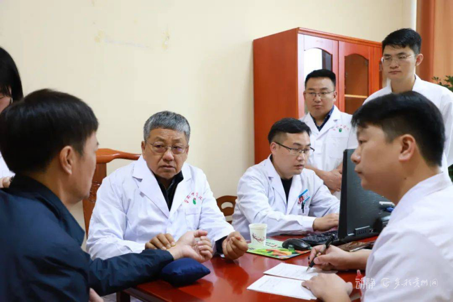国医大师王新陆在毕节市中医医院工作站为慕名而来的群众开展义诊,并向弟子悉心讲解