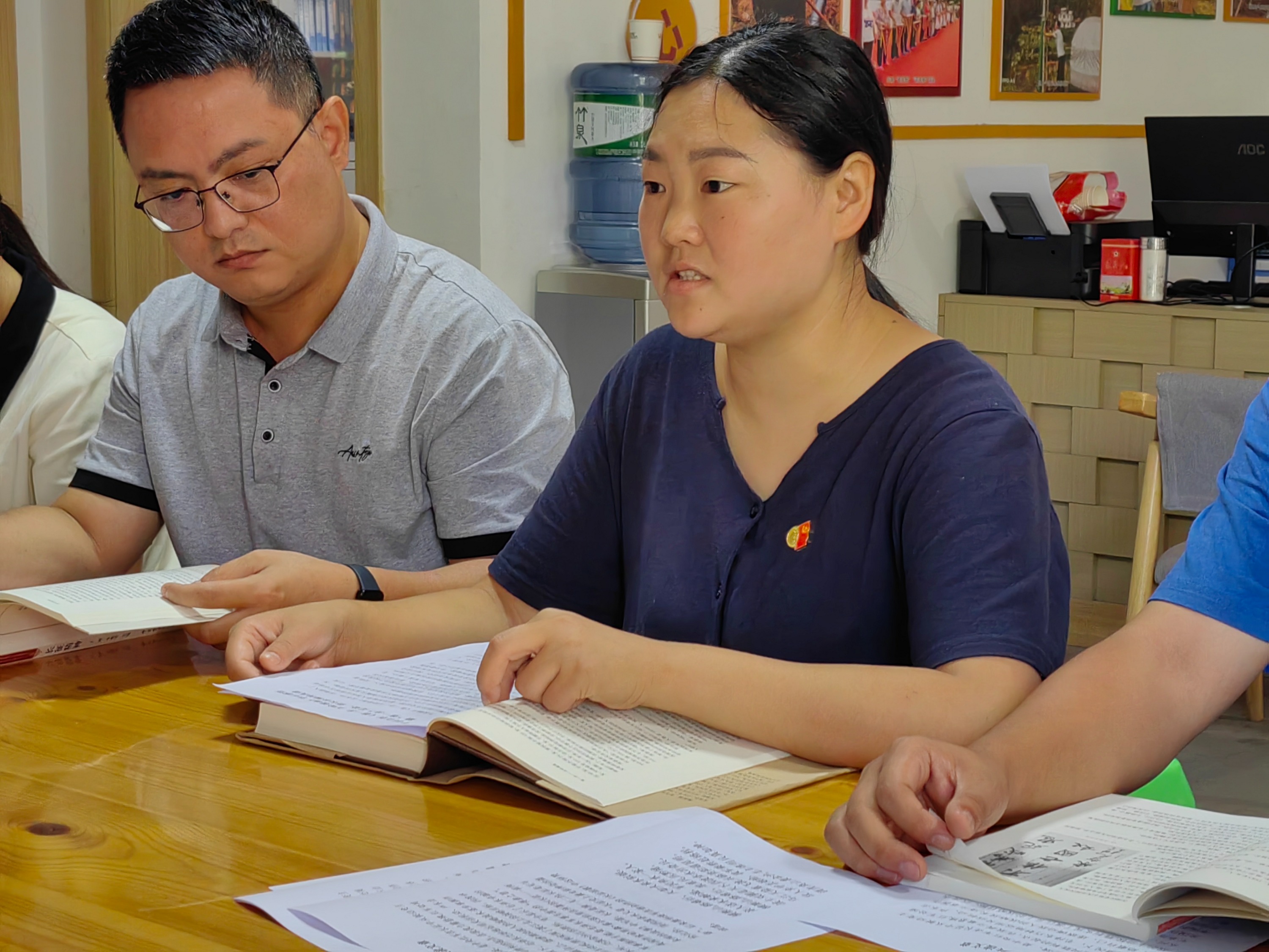 青杠坡村党建指导员程文翠、驻村选调生李东莹随后结合自身阅读体会进行好书分享,分别介绍了《千回百折》《长征精神》等书籍的相关内容并分享感悟。