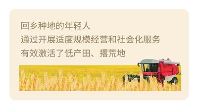 新农人所创造的多维度价值,持续拓展粮食安全边界,也给乡村带来新的生机活力。回乡种地的年轻人,通过开展适度规模经营和社会化服务,有效激活了低产田、撂荒地。在这一过程中,新技术、新装备、新模式高效汇聚,有力推动农业生产方式调整和传统产业链重塑,让一粒粮衍生出更多增值空间。