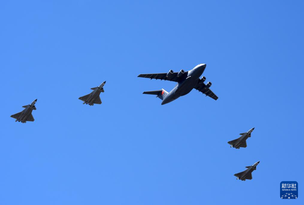 4月22日,第十三批在韩中国人民志愿军烈士遗骸回国。这是接迎第十三批在韩中国人民志愿军烈士遗骸回国的空军运-20B飞抵沈阳,4架歼-20战机护航。