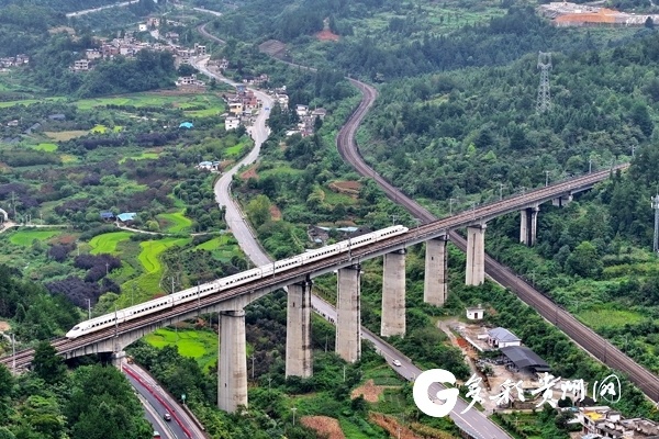 贵广高铁行驶在龙里北至都匀东区间航拍(张申 摄)