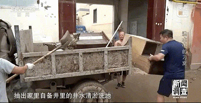 回到刁窝的人越来越多,由于停电断水,不少人家购买了发电机,抽出家里自备井里的井水清淤洗地。为了能够早日回家,村里的所有人都在努力,竭尽所能。