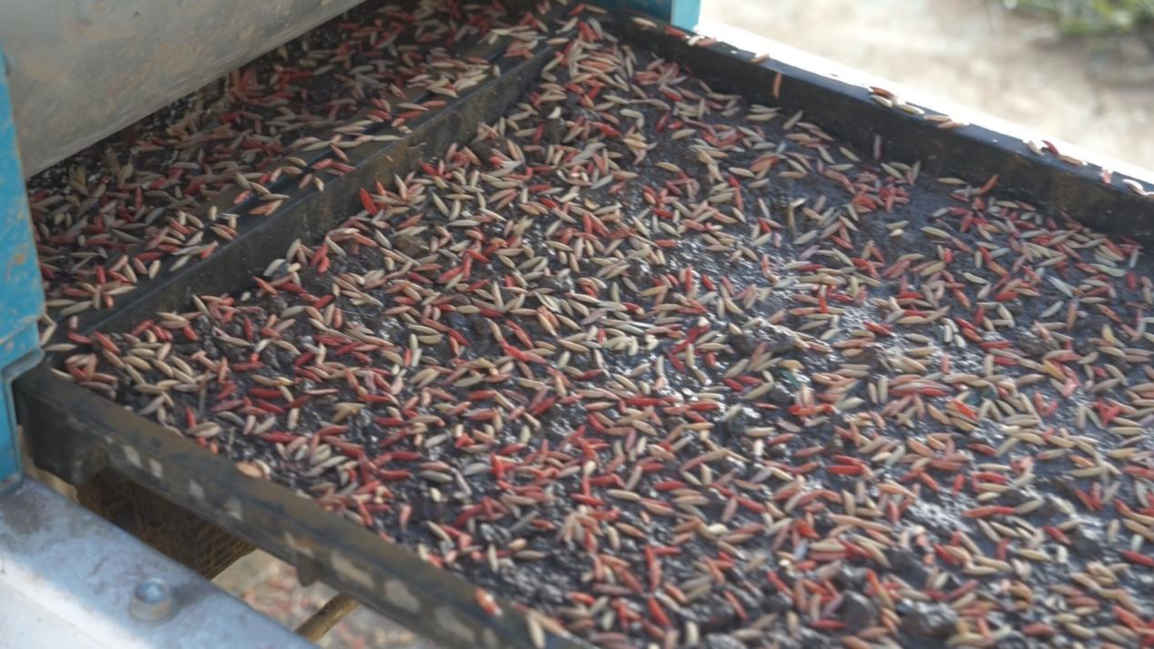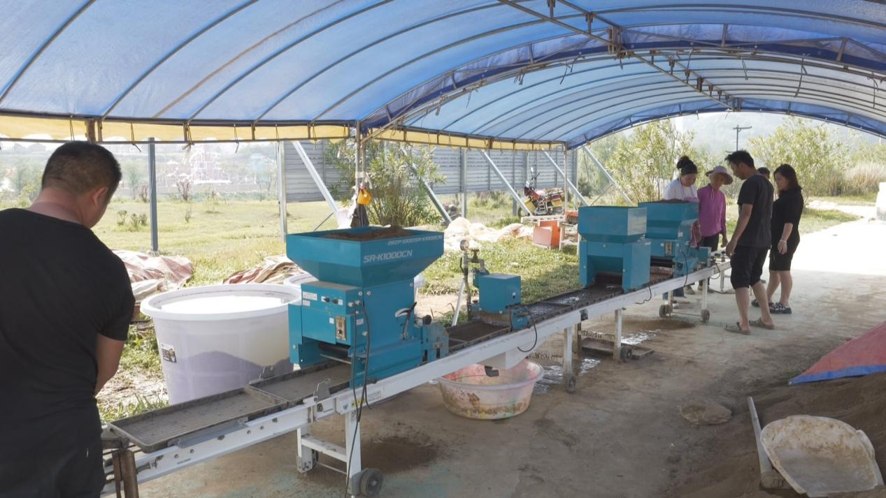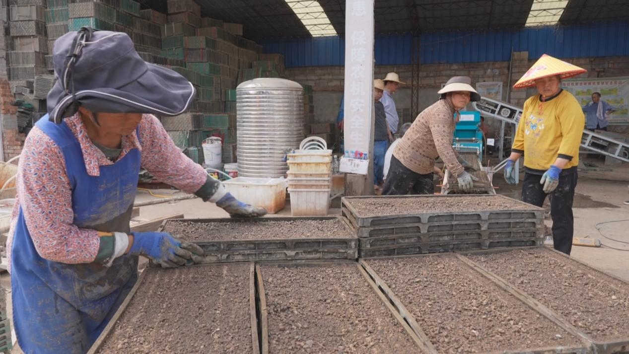 眼下正是水稻育秧的时节,在惠水县这家育苗基地,工人们正在选种、育苗。今年刚将土地托管给“田管家”的杨胜美,也在跟着学习。