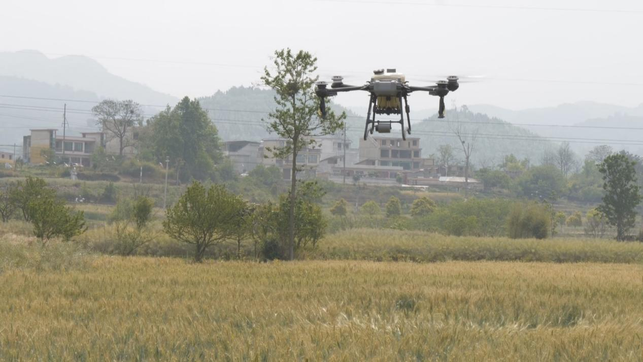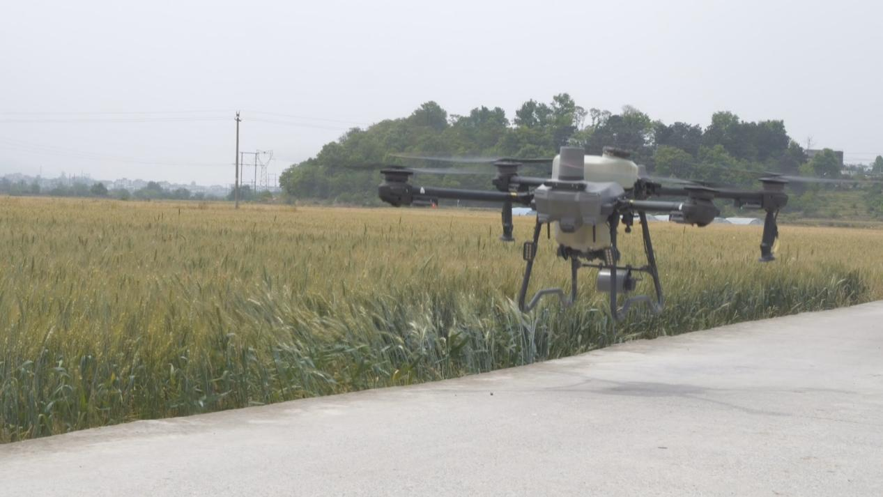 罗明才说:“他们用无人机帮我们打药,一早上就可以打完。原来一亩能收600斤麦子,现在能收850斤,种完这个就接着种水稻。”