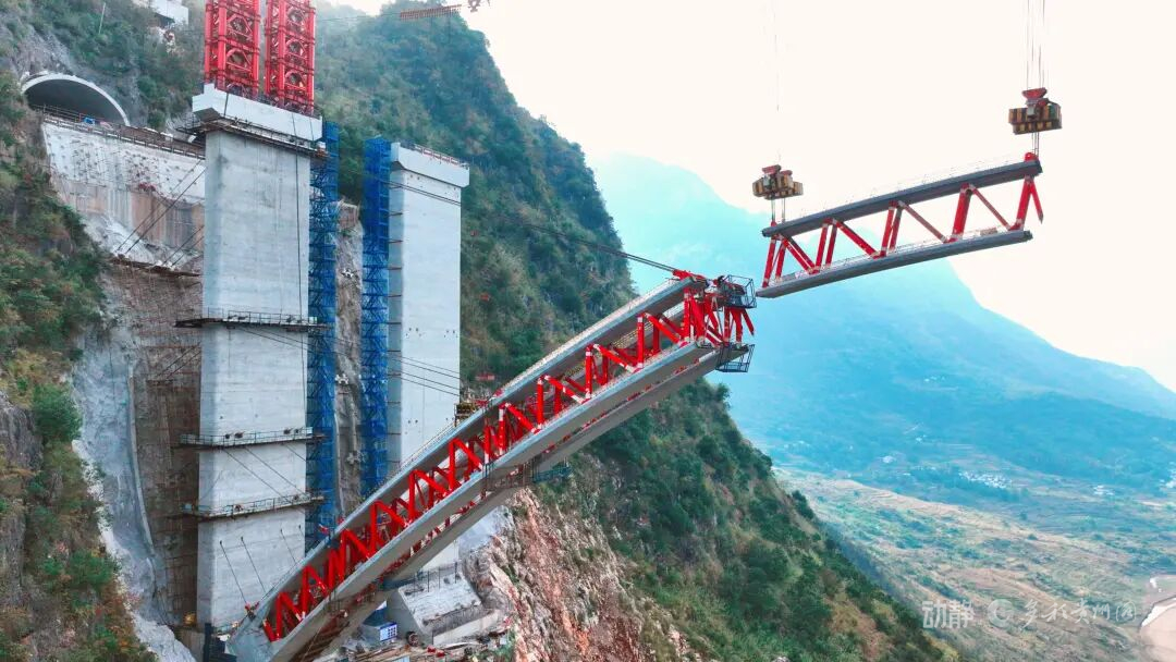 同时,大桥围绕峡谷地貌构建全流程生态施工体系,边坡锚索永临结合、双台阶预拼场科学布局,减少开挖6.09万方;混凝土中掺入复合掺合料替代水泥,节约用量3238吨,减少碳排放2060吨,实现工程建设与生态保护的和谐共生。