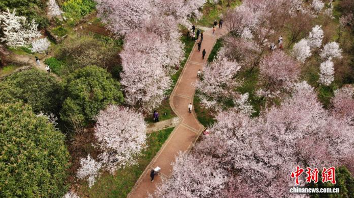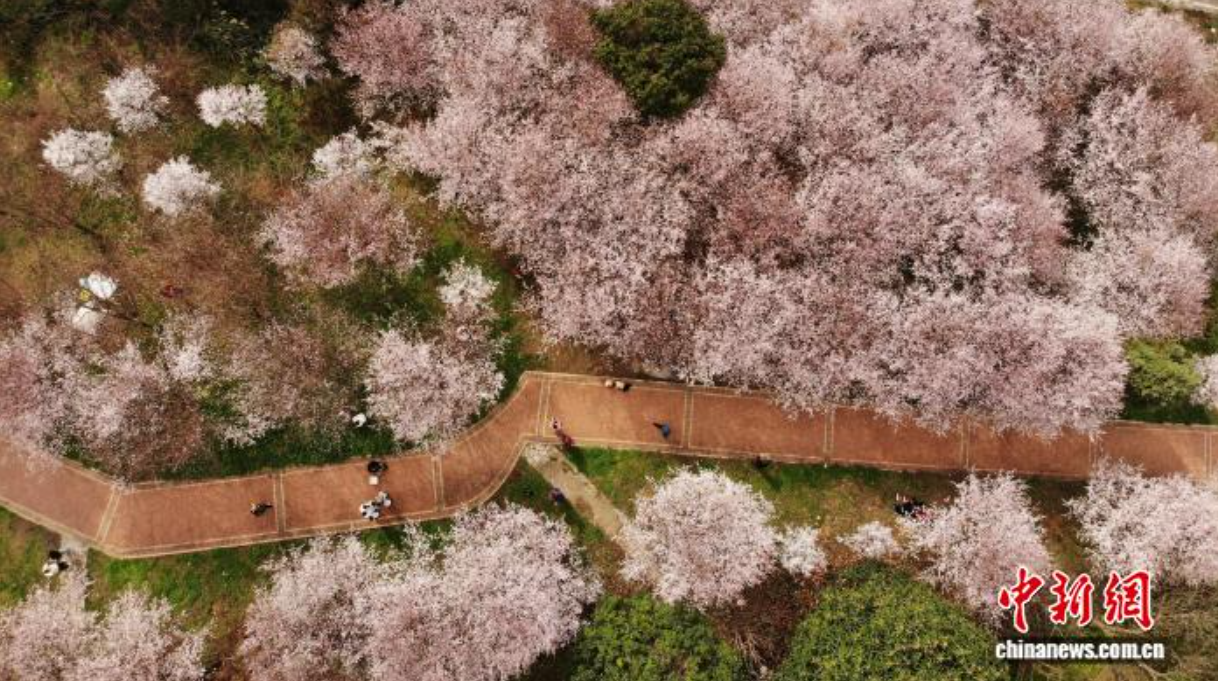 图为2月25日,民众在花树下踏青赏花。(无人机照片)石小杰 摄