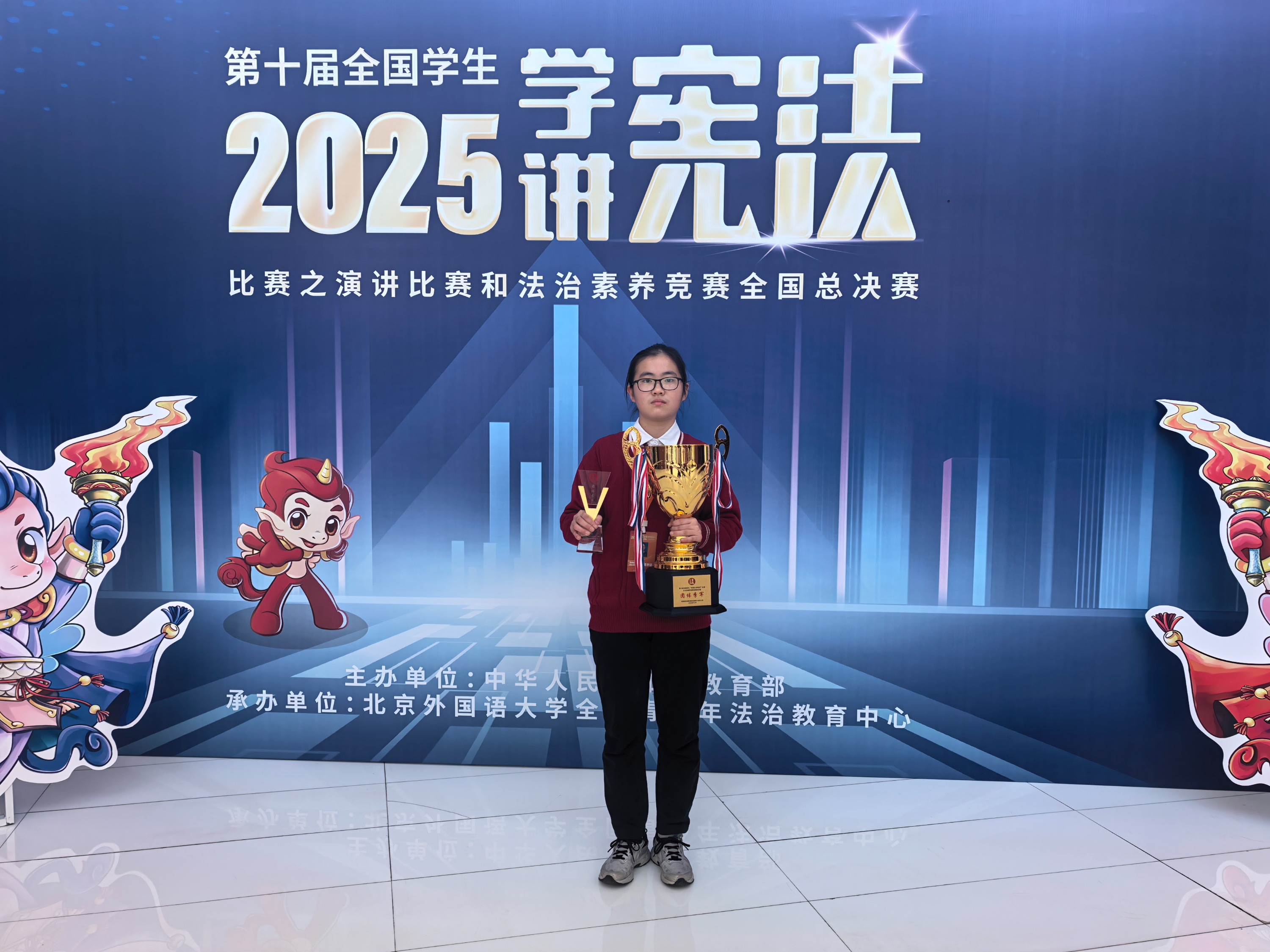近日,2025年全国“学宪法·讲宪法”总决赛在北京举行,在演讲比赛和法治素养竞赛总决赛中,遵义市绥阳县绥阳中学杨丽华同学随贵州省代表队,凭借扎实的法治素养、敏捷的思辨能力和沉稳的现场发挥,勇夺全国一等奖(季军),为贵州省基础教育再添光彩!
