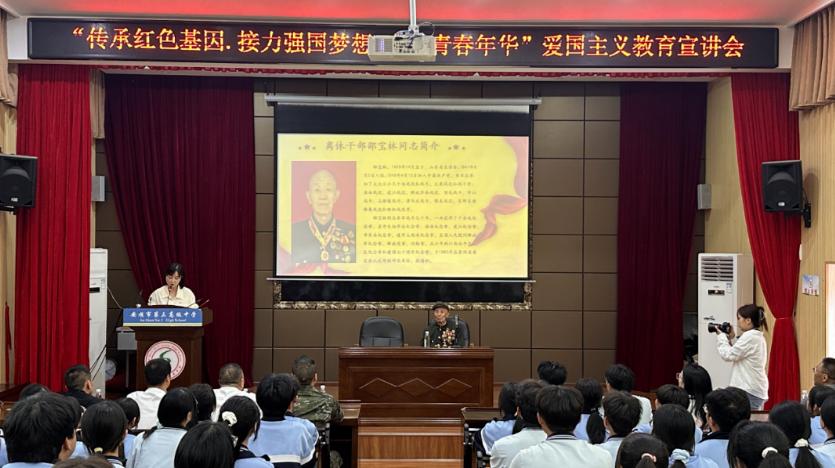 宣讲中,邵宝林老同志结合自身军旅生涯,以生动质朴的语言讲述解放战争时期他踊跃投身军营的革命故事。他深情回忆自己戍边卫国和解放西南的战斗历程,战友们在艰苦环境中坚守岗位、不惧流血牺牲保家卫国,从寒风刺骨的边境巡逻,到紧急任务中的并肩作战,一个个真实场景、一段段感人细节,让在场师生仿佛置身那段热血沸腾的艰难时光。他还分享了革命先辈为民族独立、人民解放抛头颅、洒热血的英雄事迹,叮嘱同学们要铭记历史、珍惜当下,将爱国情、强国志融入日常学习与生活中。
