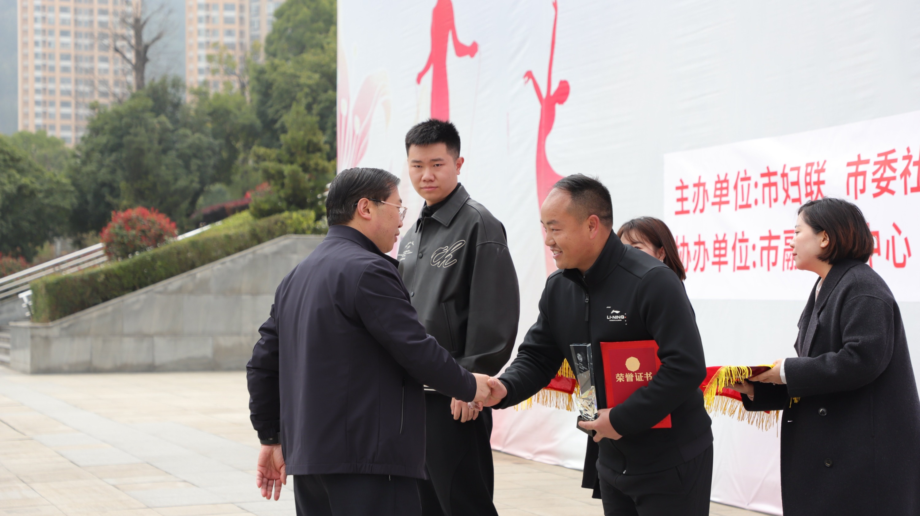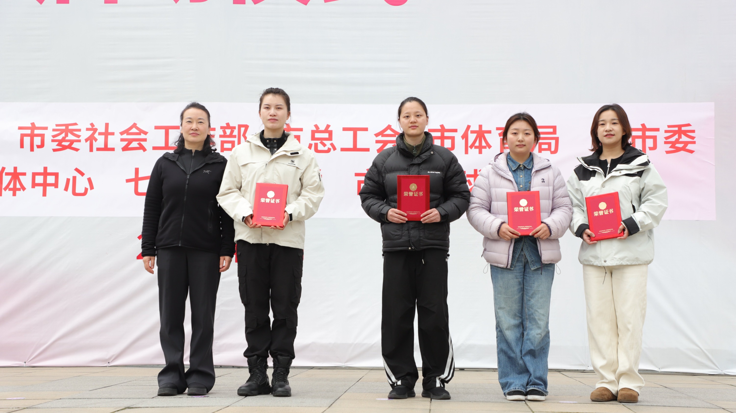 随后,出席领导嘉宾为获奖代表颁发荣誉、合影留念。颁奖仪式上,主办方鼓励全体获奖队员将赛场上的拼搏精神转化为干事创业的强大动力,在各自岗位上接续奋斗、再立新功。同时,向全市广大妇女发出倡议,希望大家立足岗位、勇担使命,以更加昂扬的姿态、更加饱满的热情、更加务实的作风,投身推动毕节高质量发展、建设贯彻新发展示范区的火热实践,用奋斗诠释初心,用实干书写华章,为推进中国式现代化毕节实践新篇章贡献巾帼智慧和力量。