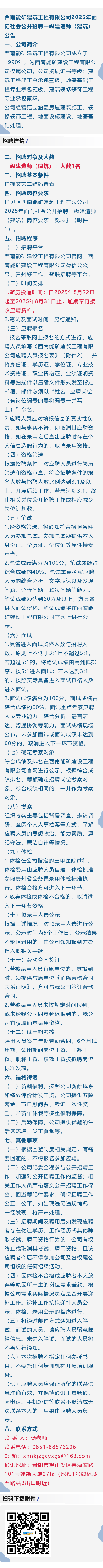 【国企】西南能矿建筑工程有限公司招聘!报名截止时间:8月31日!