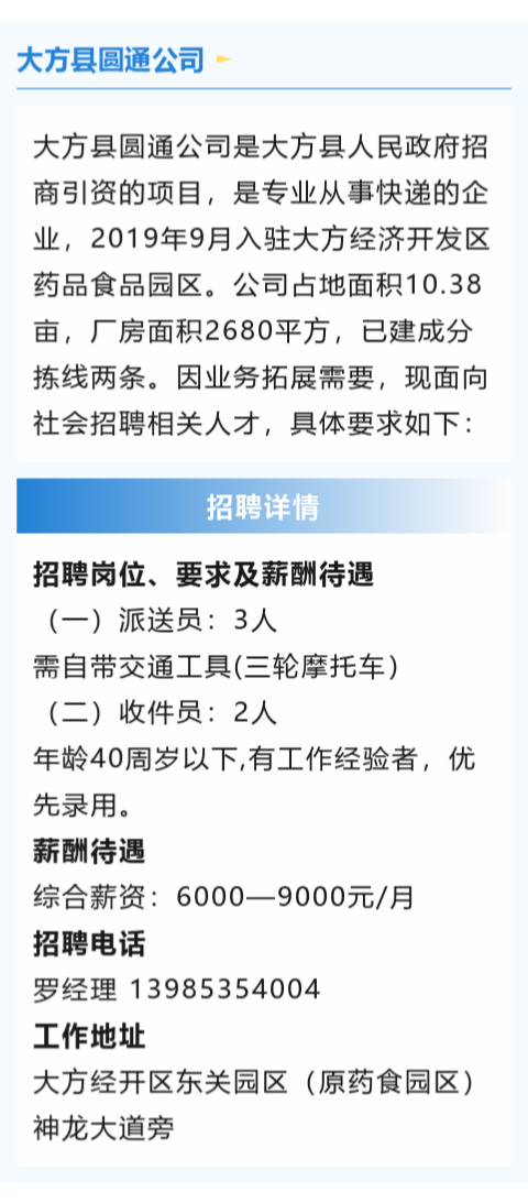 圆通公司招聘派送员、收件员!月薪6000-9000元!